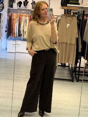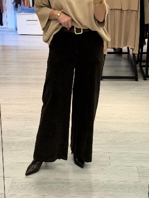 İtalyan Kahve Renk Kadife Palazzo Pantolon