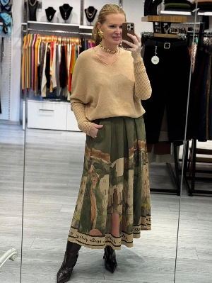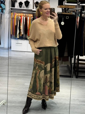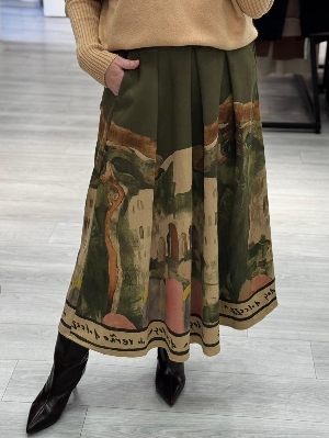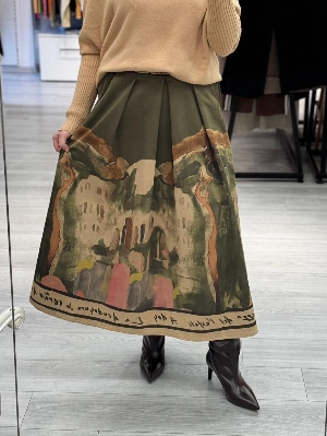 İtalyan Tablo Desen Süet Kumaş Yeşil Renk Etek