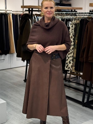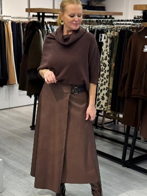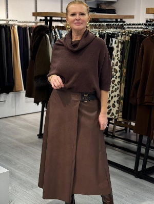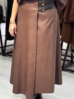 İtalyan Tasarım Deri Yandan Kemer Detay Kahve Renk Etek