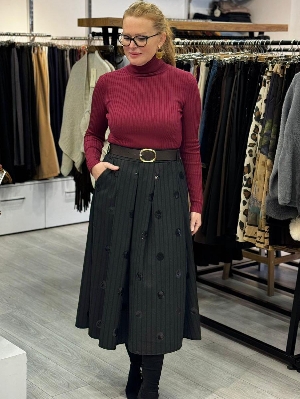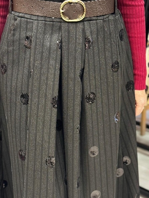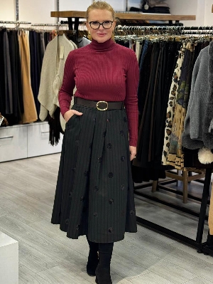 İtalyan Tasarım Gabardin Kumaş Puantiye Detay Siyah Renk Etek
