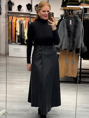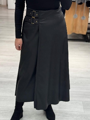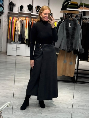 İtalyan Tasarım Kemer Detay Siyah Renk Etek