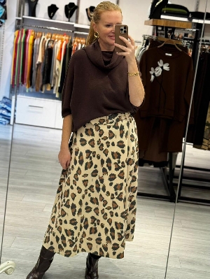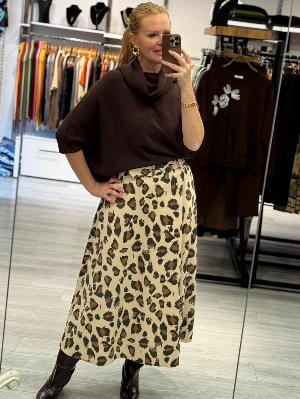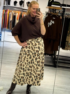 İtalyan Tasarım Süet Kumaş Leopar Desen Etek