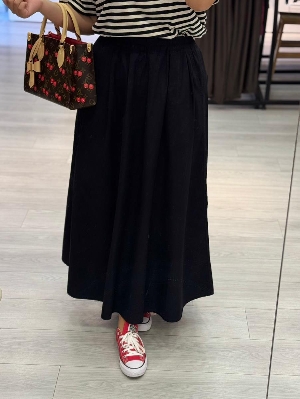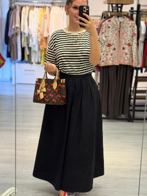 Siyah Belden Lastikli Poplin Kumaş Etek