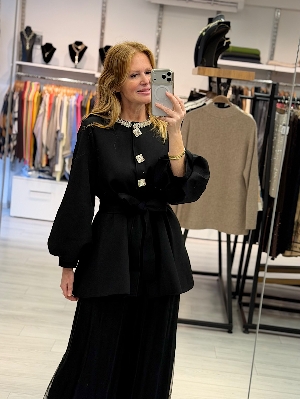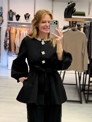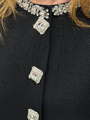 İtalyan Gabardin Kumaş Siyah Renk Taş Detay Ceket