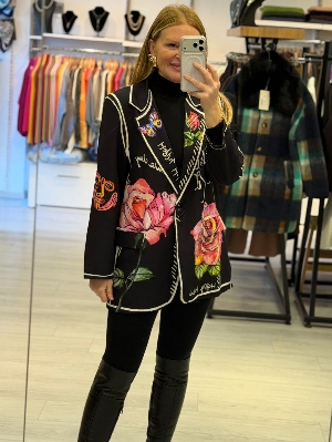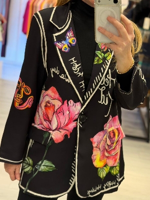 İtalyan Krep Kumaş Çizim Detay Siyah Ceket
