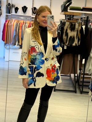 İtalyan Krep Kumaş Figür Detay Ekru Ceket
