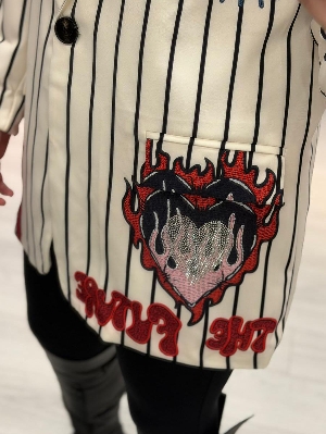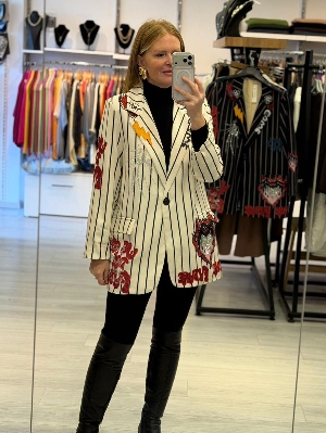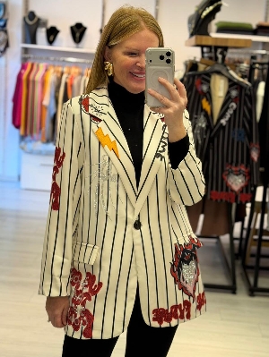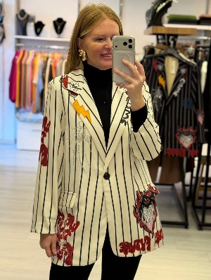 İtalyan Krep Kumaş Graffiti Detay Ekru Ceket