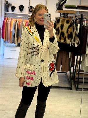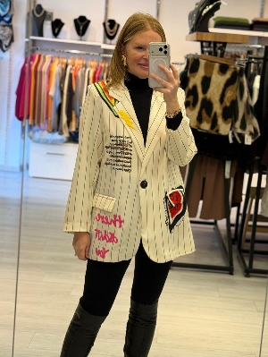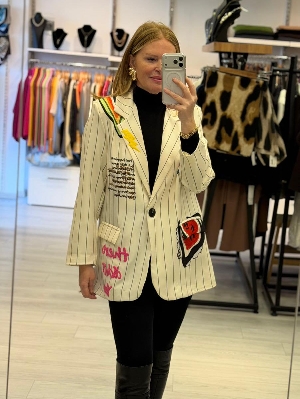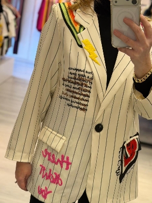 İtalyan Krep Kumaş Pop Art Detay Ekru Ceket