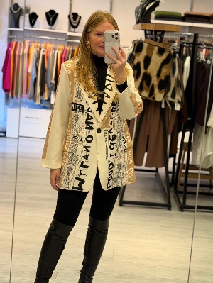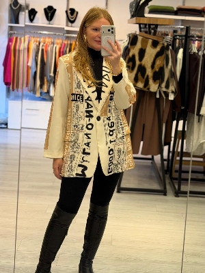 İtalyan Krep Kumaş Rick Detay Bej Ceket