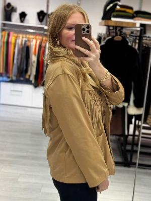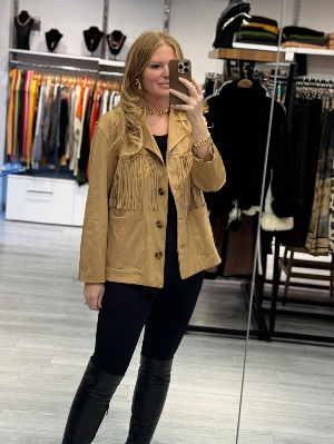 İtalyan Püskül Detay Süet Kumaş Bej Renk Ceket