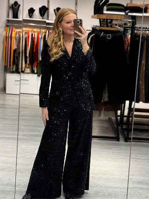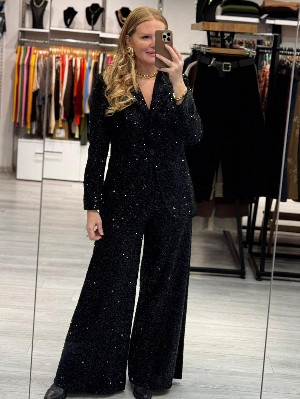 İtalyan Tasarım Payet Siyah Renk Ceket