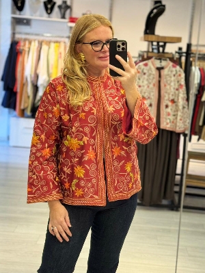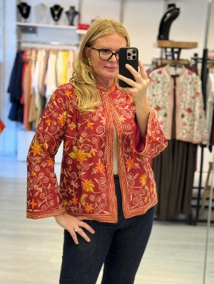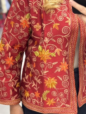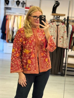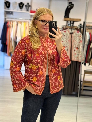 Suzani İşleme İpek Kırmızı Renk Ceket