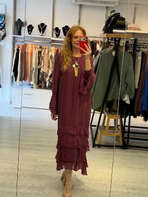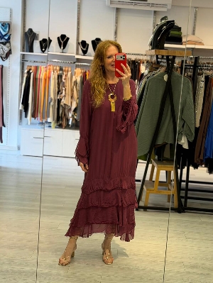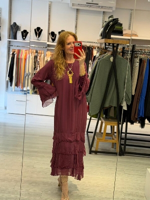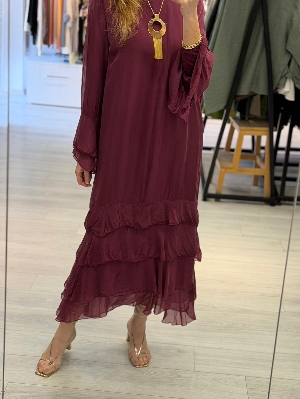 Ürün Kodu: 0001volanuzunipekelbisebordo   Marka: Ebru Butik Fashion