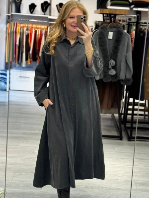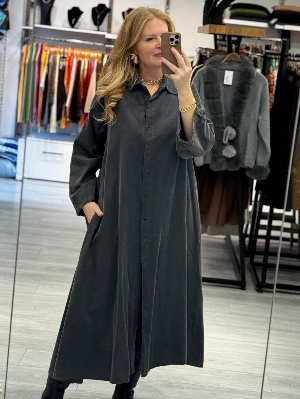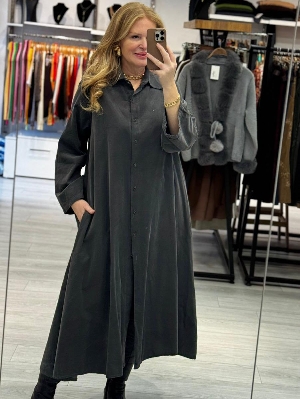 İtalyan Antrasit Renk Kadife Gömlek Elbise