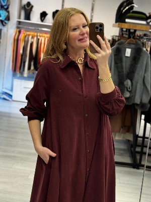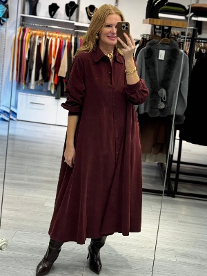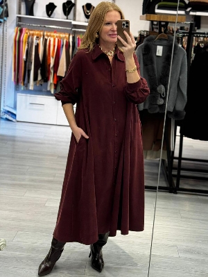 İtalyan Bordo Renk Manşet Kol Gömlek Elbise
