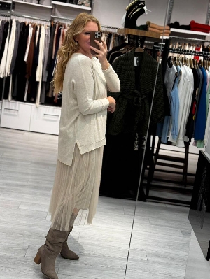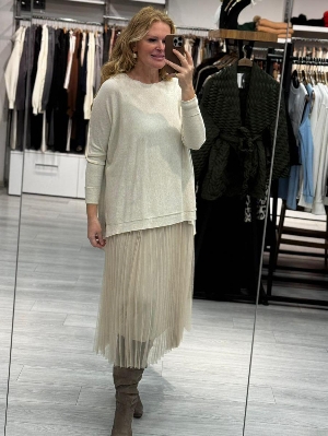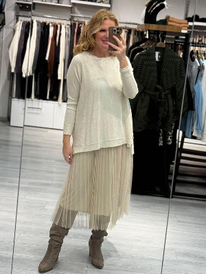 İtalyan Çelik Örme Salaş Krem Renk Tasarım 2`li Elbise