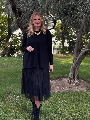 İtalyan Çelik Örme Salaş Siyah Renk Tasarım 2`li Elbise