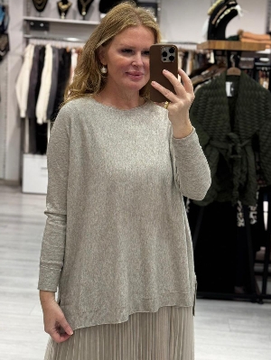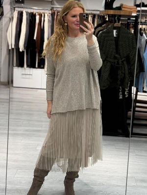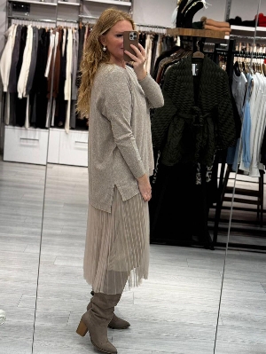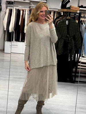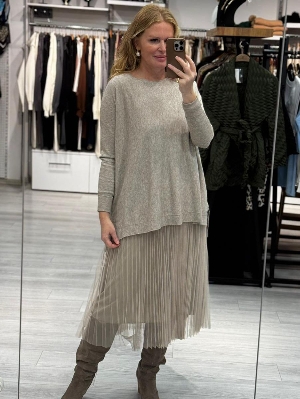 İtalyan Çelik Örme Salaş Vizon Renk Tasarım 2`li Elbise