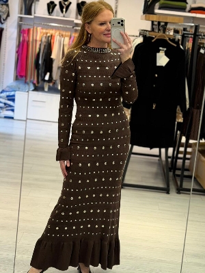 İtalyan Çelik Örme Zımba Detay Kahve Renk Elbise