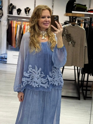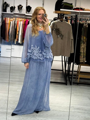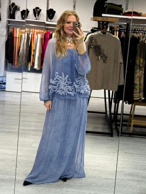 İtalyan İş Detay Bebek Mavi İpek Elbise