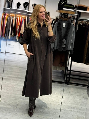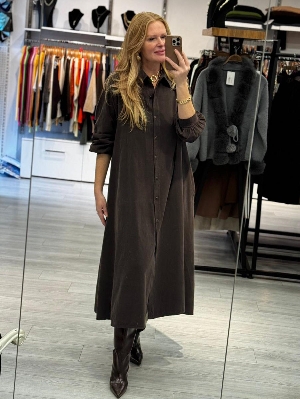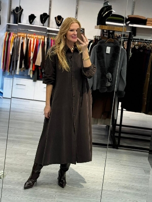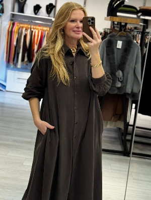 İtalyan Kahve Renk Manşet Kol Gömlek Elbise