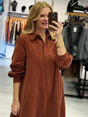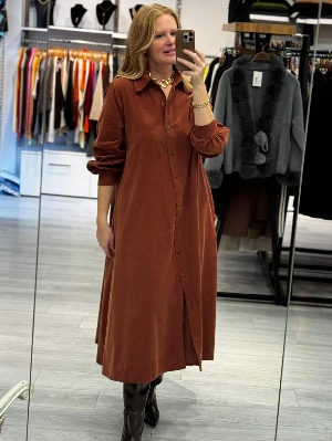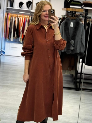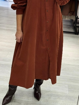 İtalyan Kiremit Renk Manşet Kol Gömlek Elbise