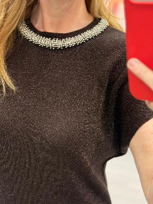 İtalyan Taş Detay Merserize Triko Elbise Kahve