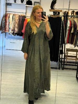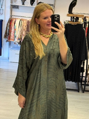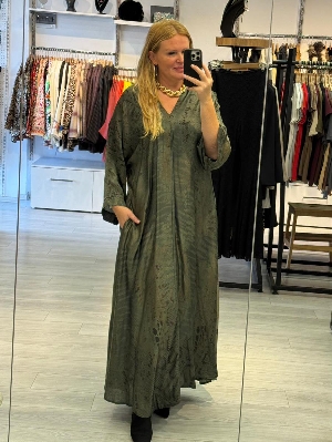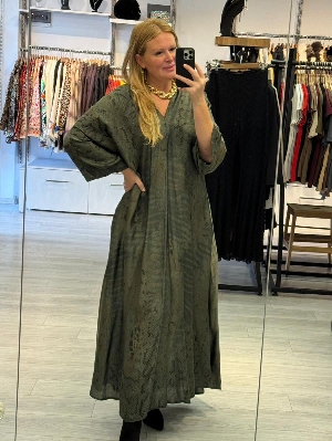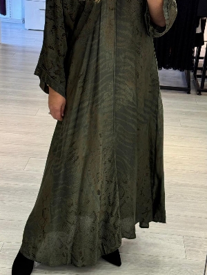 İtalyan Yılan Desen Haki Renk İpek Saten Elbise