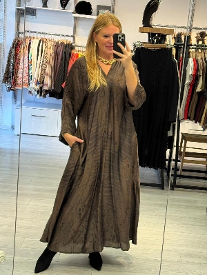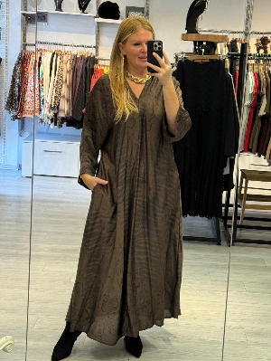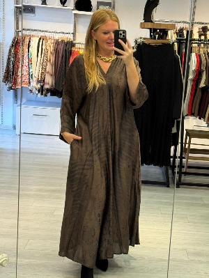 İtalyan Yılan Desen Kahve Renk İpek Saten Elbise