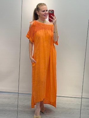 Ürün Kodu: 00pamukfileturuncuketenelbise   Marka: Ebru Butik Fashion