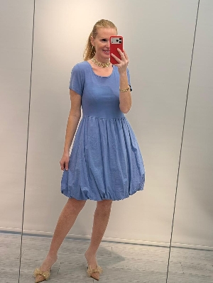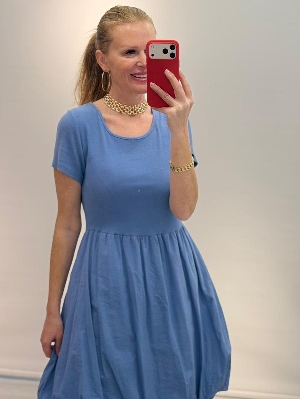 Pamuklu Mavi Renk Balon Elbise