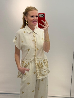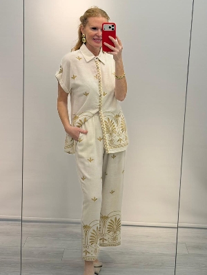 İtalyan Bej İşleme %30 Keten %70 Pamuk Takım