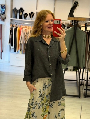 İtalyan Çiçek Antrasit Renk Keten Takım
