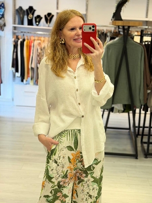 İtalyan Çiçek Detay Beyaz Renk Keten Takım