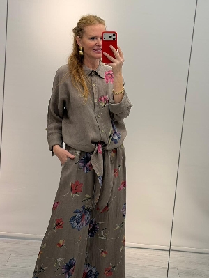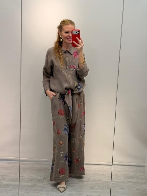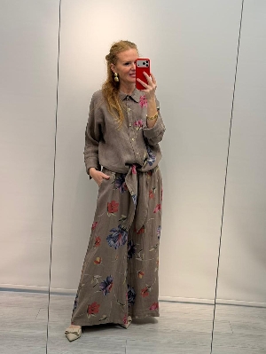 İtalyan Çiçek Detay Vizon Renk Keten Takım