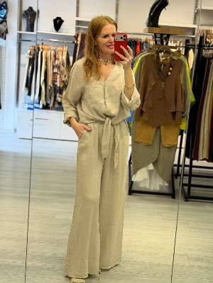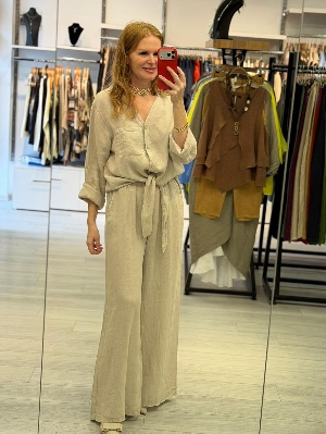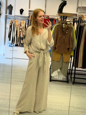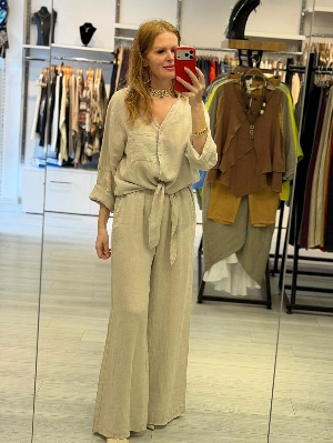 İtalyan Dantel Detay Keten Takım Bej