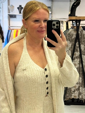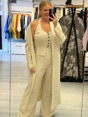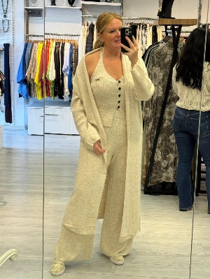 İtalyan Ekru Renk Çelik Örme Triko 3`lü Takım