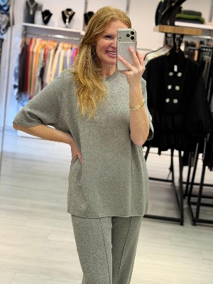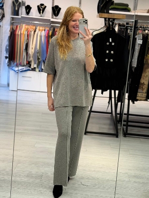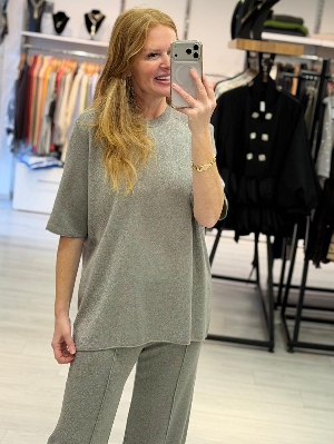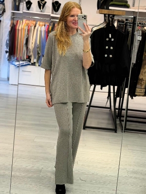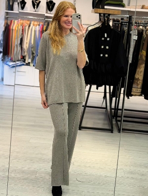 İtalyan Gri Renk Çelik Örme Pırıltı Detay Triko Takım