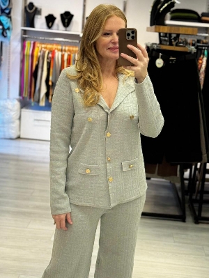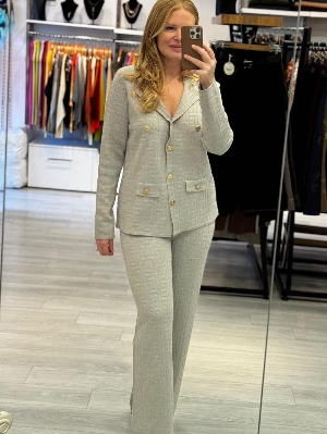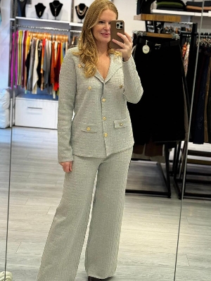 İtalyan Gri Renk Dokuma Detay 2` Li Çelik Örme Takım