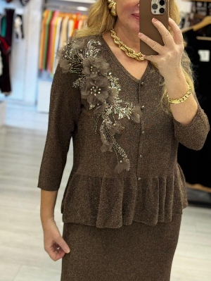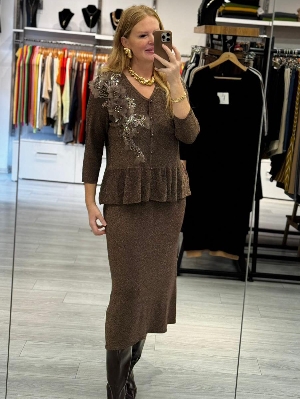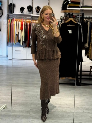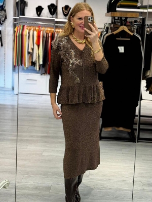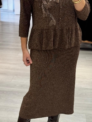 İtalyan İş Detay Etekli 2` Li Çelik Örme Takım Kahve
