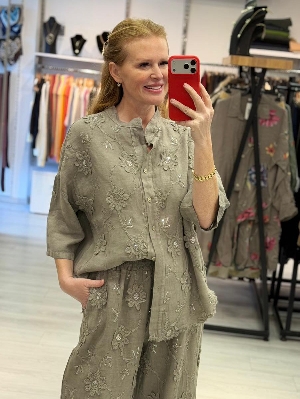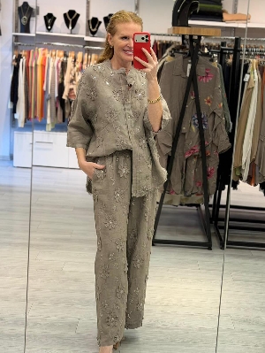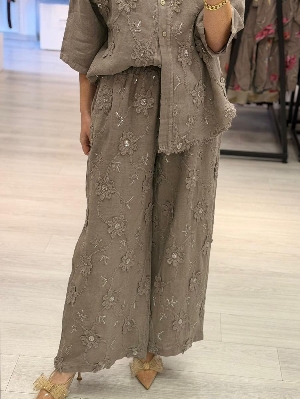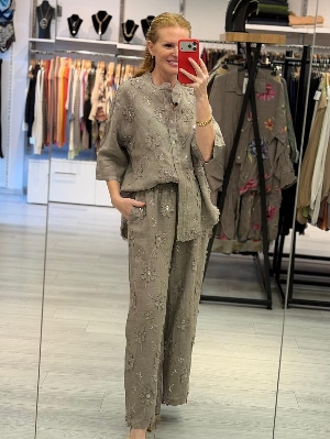 İtalyan İş Detay Vizon Renk Keten Takım