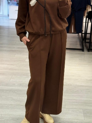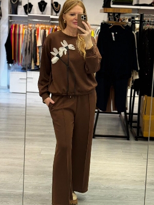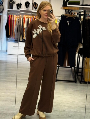 İtalyan Kahve Renk Çiçek Detay Eşofman Takımı