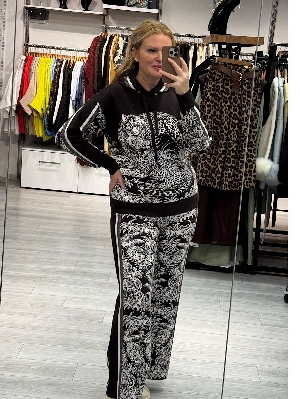 İtalyan Kahve Renk Leopar Çelik ÖrmeTriko 2`li Takım