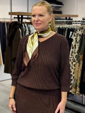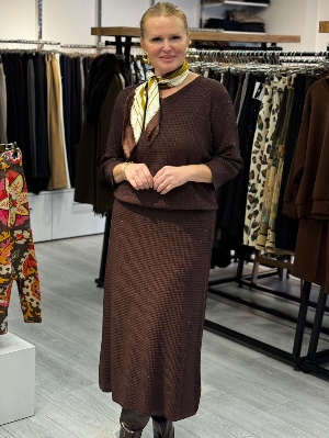 İtalyan Kahve Renk Taş Detay Etekli 2` Li Çelik Örme Takım