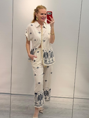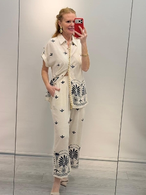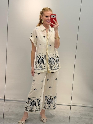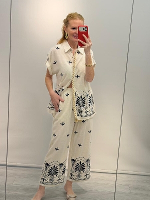 İtalyan Lacivert İşleme %30 Keten %70 Pamuk Takım