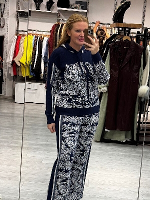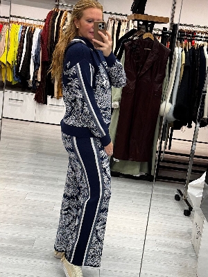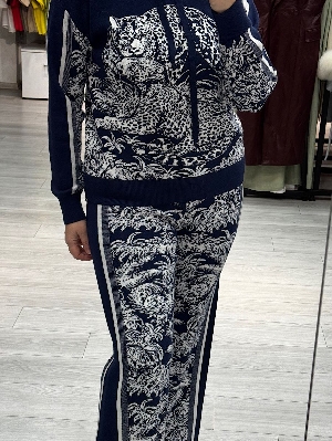İtalyan Lacivert Renk Leopar Çelik ÖrmeTriko 2`li Takım