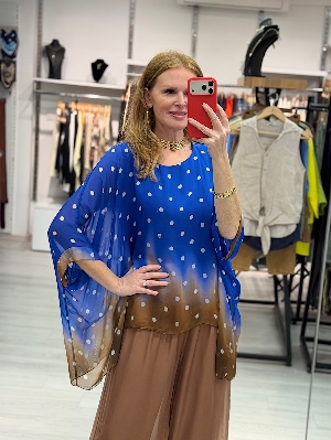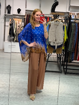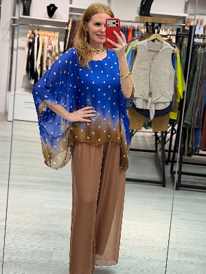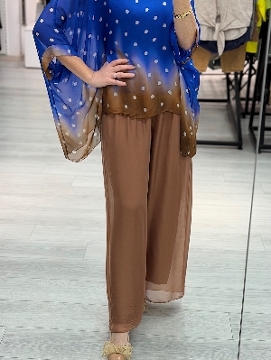İtalyan Puantiye İpek Takım Saks