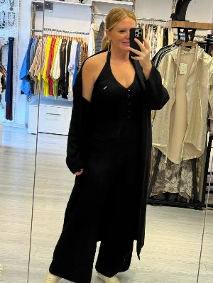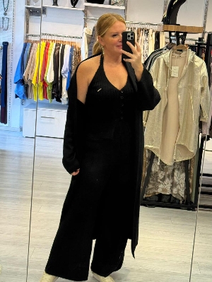 İtalyan Siyah Renk Çelik Örme Triko 3`lü Takım