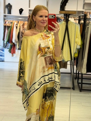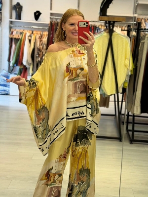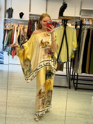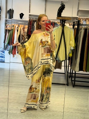 İtalyan Tablo Desen İpek Saten Takım Sarı