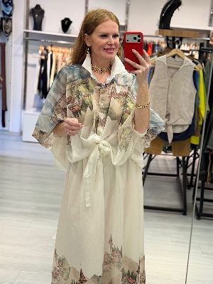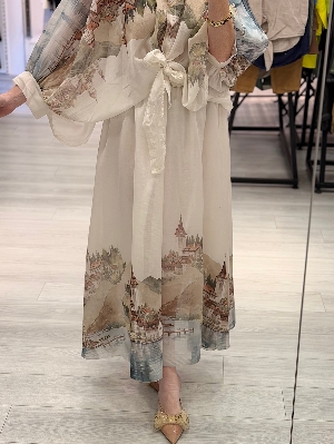 İtalyan Tablo Desen Pamuk Etek` li Takım Beyaz